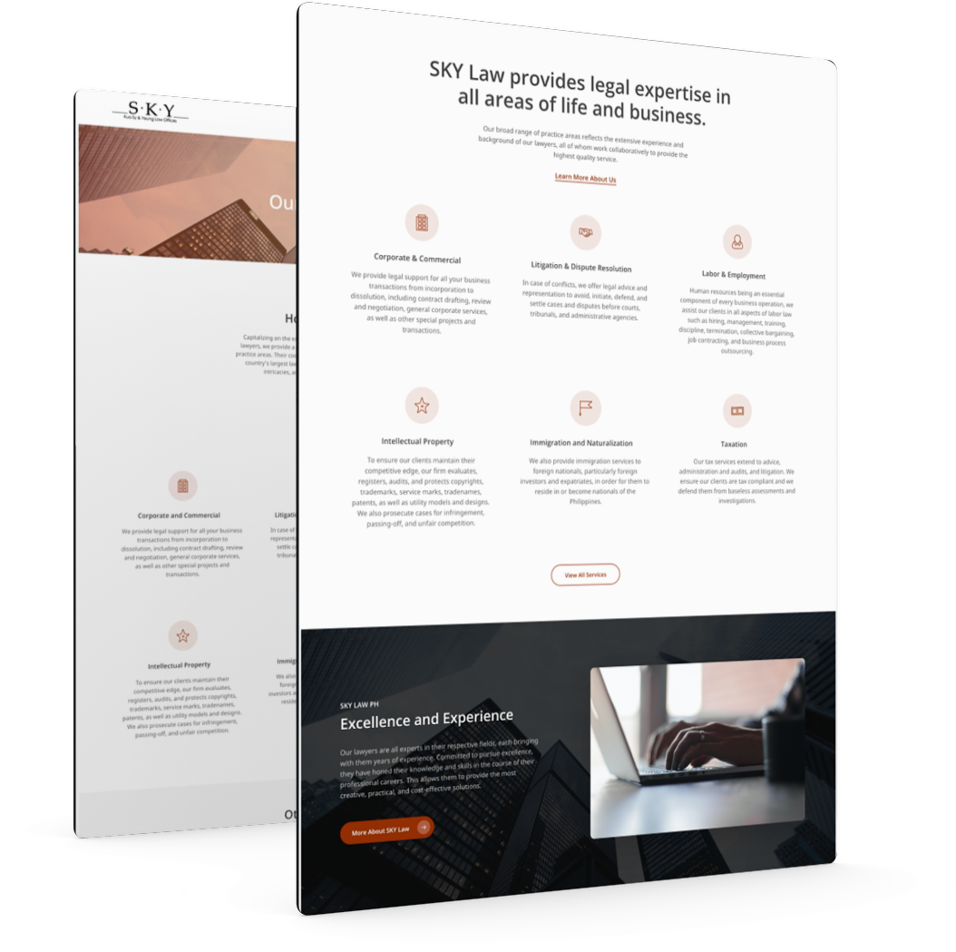 When SKY LAW sought our creative counsel, our approach was a pragmatic one: channel their expertise. We went beyond it, however, by making the website better communicate with clients. From setting meetings to booking consultations, the website ran a mile more for better customer management.